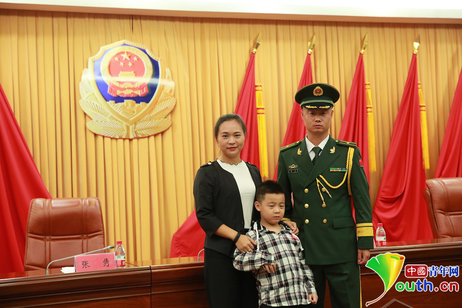 晋衔仪式结束后,一家三口合影留念。中国青年网通讯员 张猛 摄