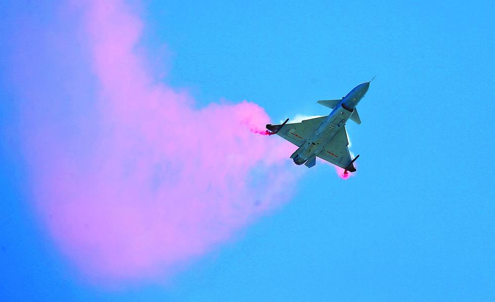按照惯例,八一飞行表演队用整齐划一的多机编队拉开了本次航展飞行表演的序幕。紧接着出场的,是一个“神秘明星”——换装推力矢量发动机的歼-10B战机(上图)。相比八一飞行表演队采用的歼-10表演机,换装推力矢量发动机的歼-10B展现出别样的激情,一系列炫目的飞行动作引爆了现场观众的情绪。《环球时报》记者看到,这架拉着彩烟的飞机进行了高速大迎角机动,拉升的幅度与速度都令人咂舌。紧接着,它接连做出“眼镜蛇”机动、“落叶飘”等高难度的超机动动作,充分展现推力矢量发动机给战机带来的机动能力提升。