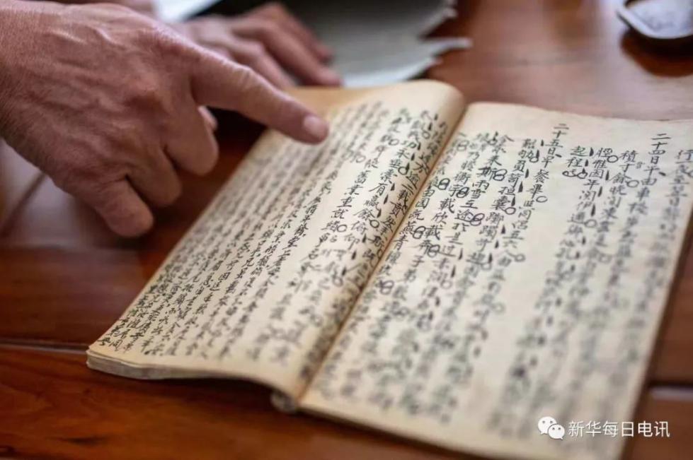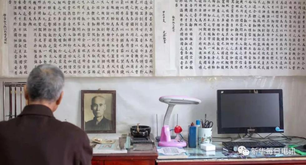 华工后裔孙光隆翻看爷爷孙干留下的文字记录,桌上照片为孙干。记者王阳摄(拍摄时间:10月26日)