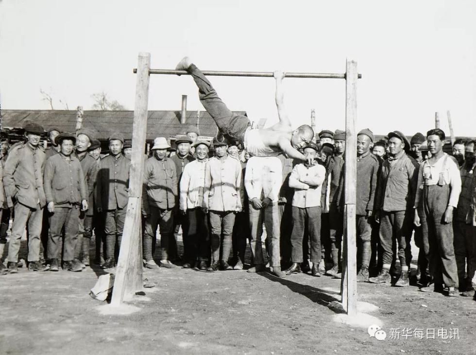 一战华工在工作闲暇时锻炼身体。(威廉·詹姆斯·霍金斯摄 约翰·德·露西提供)