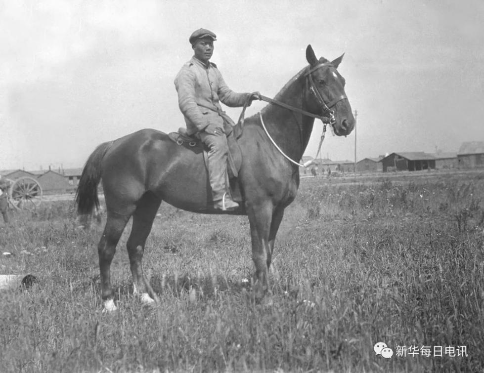一位一战华工的骑马照片。(威廉·詹姆斯·霍金斯摄 约翰·德·露西提供)