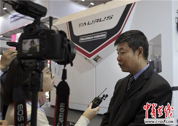 11月9日上午,进博会智能及高端装备展区,德国瓦德里希科堡机床公司北京代表处总经理刘中柏接受采访。中国青年报·中青在线记者 李峥苨/摄