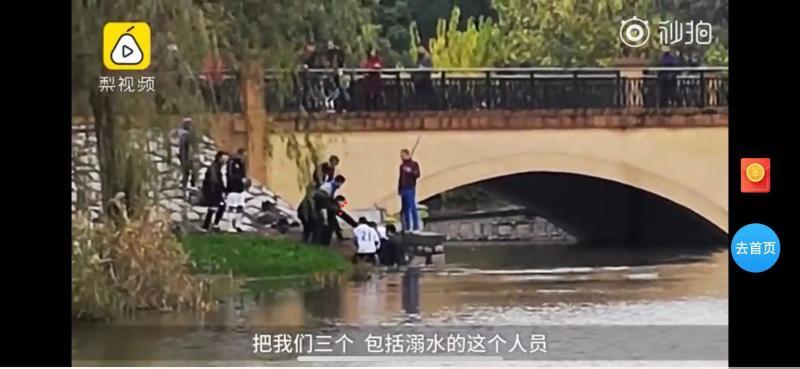 图说:一批业余足球队员在寒冬腊月跳入刺骨河水,成功救助溺水女子上岸。