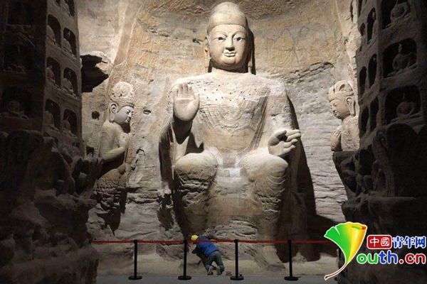 3D打印技术复制的10米高的云冈大佛。资料图