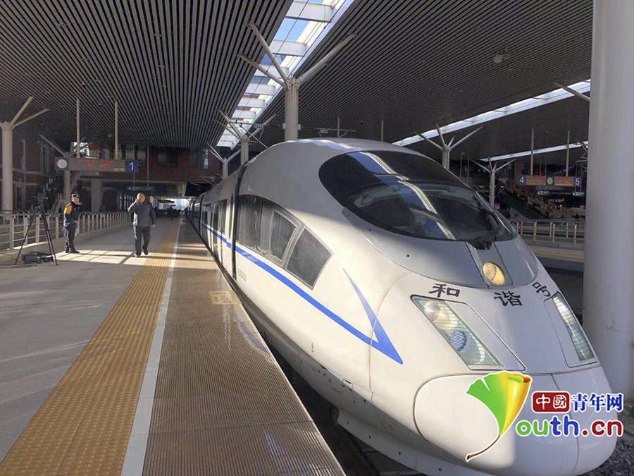 首发列车进入沈阳站中国青年网 肖戎川摄