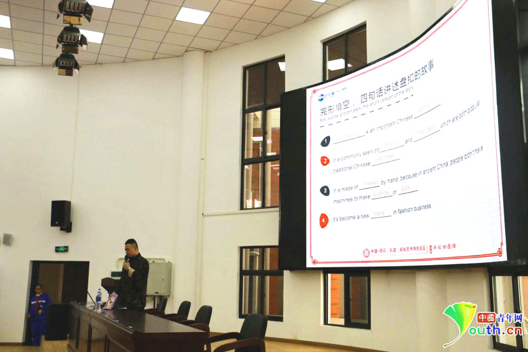 新航道长沙学校的陈涛老师用英文讲解手工盘扣。中国青年网记者 郭凯薇 摄