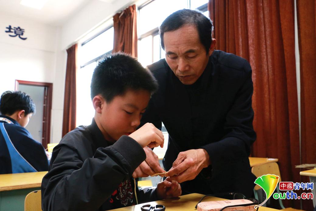 棕编传承人指导同学制作小蜗牛。中国青年网记者 郭凯薇 摄