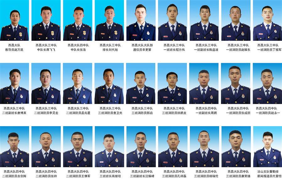 在扑救四川凉山木里森林火灾中英勇牺牲的四川森林消防总队凉山州支队指战员(拼版照片)。 新华社发(应急管理部提供)