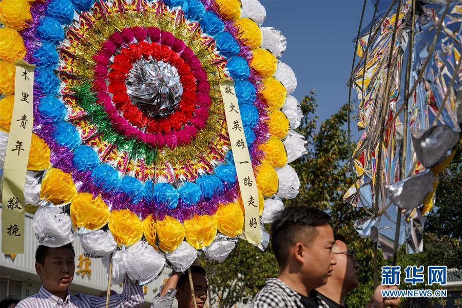 4月2日,群众来到西昌市殡仪馆为牺牲的救火英雄献哈达。 新华社记者 张超群 摄