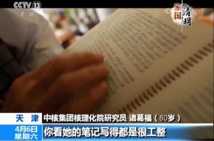 中核集团核理化院研究员 诸葛福: 她当时看不清,用那个美国带回来的一个长条放大镜,先按字母自己描,描深了,然后再看看,完了之后把我找去,她再一个一个字一句一句话给我修改。