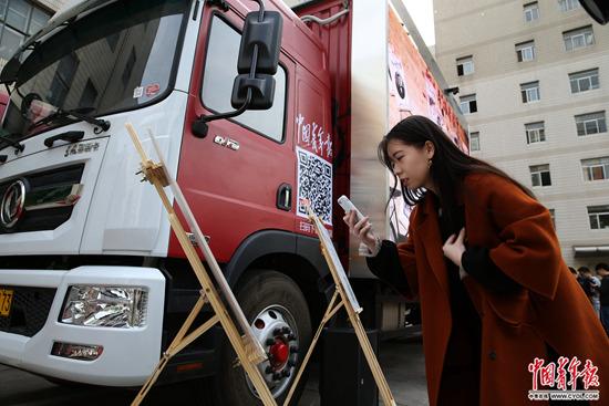 4月8日,北京,五四百年青年文化万里巡展公益活动现场,一名大学生扫码参与互动。中国青年报·中青在线记者 陈剑/摄