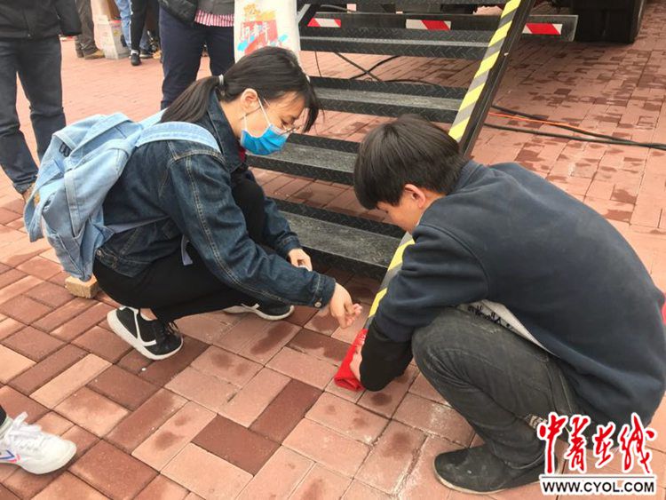 排队学生主动帮工人师傅修缮设备
