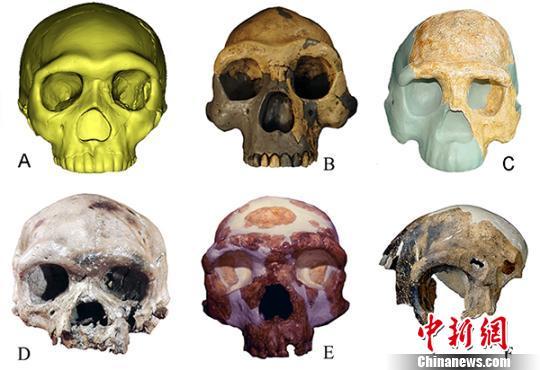 华龙洞古人类化石与中国其他古人类化石的对比:A,华龙洞人;B,周口店直立人;C,南京直立人;D,大荔;E,金牛山;F,马坝。吴秀杰/供图