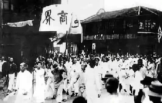 1919年爆发五四运动。图为1919年5月7日上海各界人民二万多人举行国民大会并游行示威。(新华社稿)