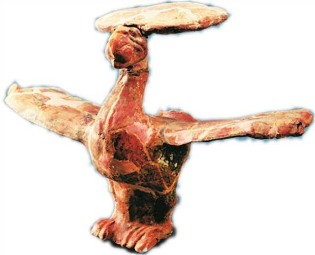 东汉陶鸟,俗称巴渝神鸟,现存于重庆中国三峡博物馆。出土于丰都高家镇,通高16厘米,长27厘米。