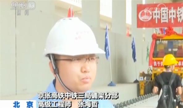 京张高铁中铁三局铺架分部 高级工程师张海哲 :这跟铁轨铺设完成,标志着全线轨道拉通。