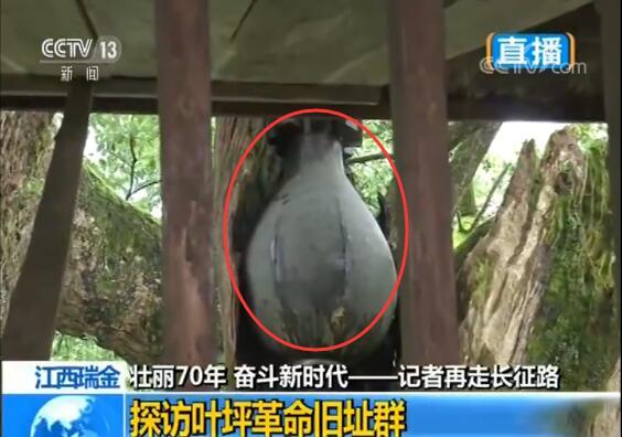 革命旧址有棵大樟树,茂盛的古树用它的枝桠轻轻地托着一颗未爆的炸弹,炸弹有一个老式暖水瓶那么大,高高地悬在半空。它是从千多米高的天空飞落下來后被这棵树轻轻接住的,而我们现在看到的这枚炸弹其实已经只是一个模型了。1933年4月份,由于有叛徒出卖,所以国民党派了飞机到这块儿进行轰炸,非常凑巧,有一枚炸弹,从上空落下的时候,不偏不倚,就刚好卡在这一棵被雷劈过的树梢上,没有触及到炸弹最底端的引信,所以炸弹并没有引爆。那在我们旁边的这栋房子二楼的一扇窗户,就是当年毛泽东居住的房间,就是因为这个炸弹掉下来之后,中央政府的根据地就暴露了,所以后来整个中央政府才迁往了沙洲坝那边。