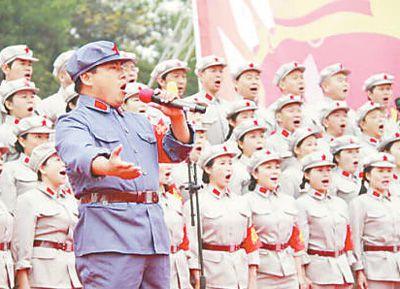 江西省于都县长征源合唱团是由160余名红军后代、歌唱爱好者组成的业余团队。图为合唱团在义演。记者 夏康健 朱 磊摄影报道