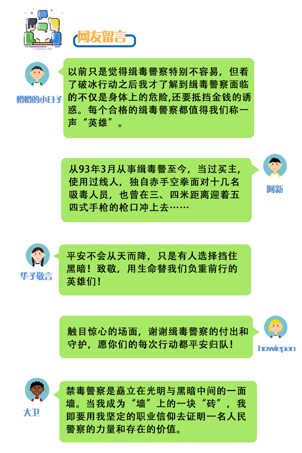 网友留言致敬缉毒警察。资料图