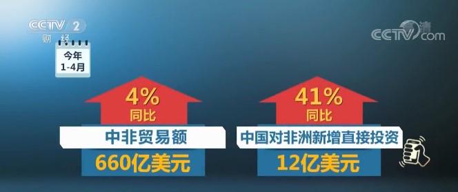数据显示,今年1至4月,中非贸易额达到660亿美元,同比增涨4%;中国对非洲新增直接投资12亿美元,同比增涨41%。
