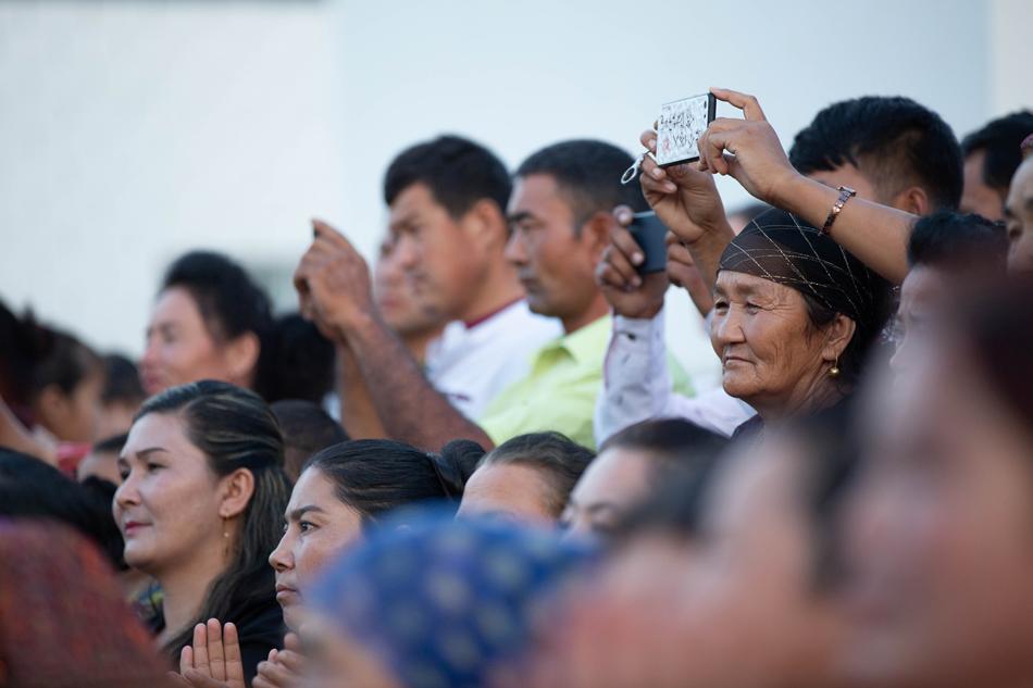 文艺表演吸引了不少村民和游客围观,不少人纷纷拿出手机拍照。