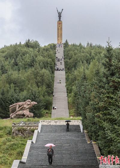 7月29日,四川省松潘县川主寺镇元宝山,红军长征纪念碑碑园的红军长征纪念总碑。中国青年报·中国青年网见习记者 孔斯琪/摄