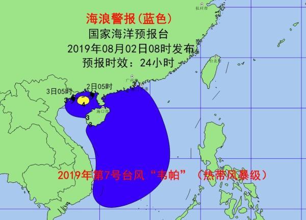 今年第7号台风“韦帕”(热带风暴级)今天(8月2日)8点位于广西北海近海海面上。