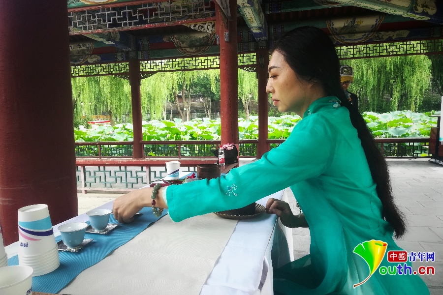 “荷香茶韵”,茶艺师正在为嘉宾沏茶。中国青年网记者 张瑞玲 摄