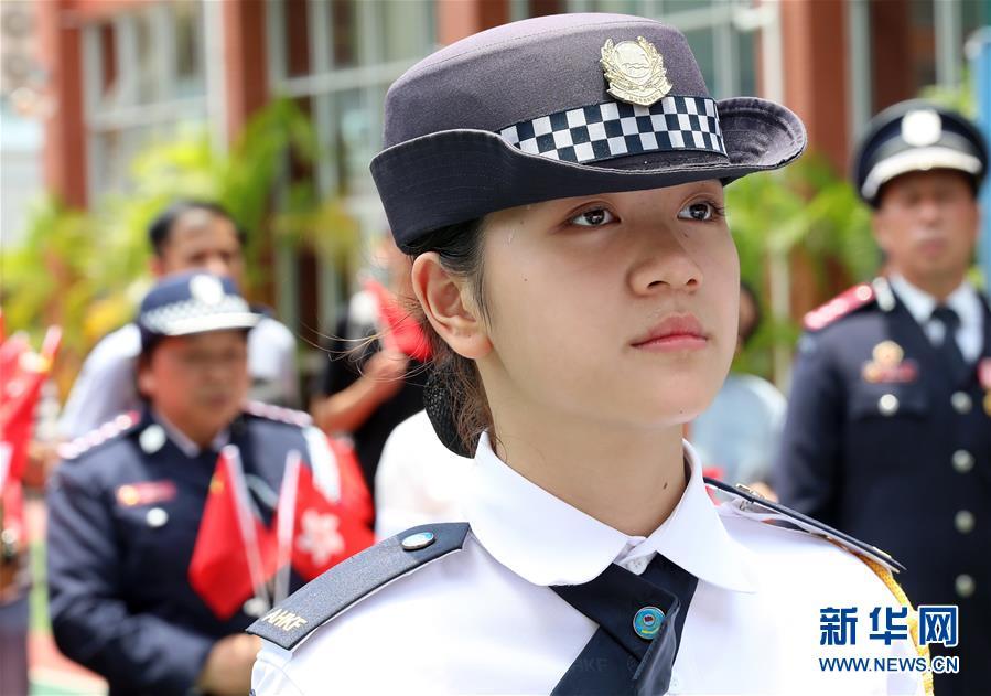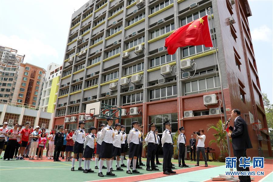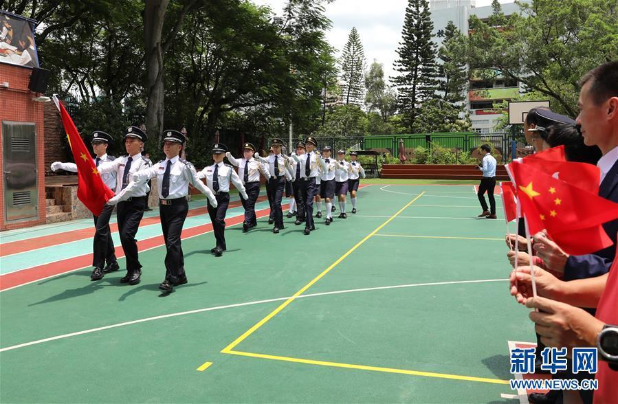 8月11日,香港升旗队总会在新界元朗一家中学举行“家在中华”升旗礼。 新华社记者 吴晓初 摄