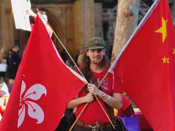 悉尼大学学生小高告诉观察者网,参与游行的人数众多,一时根本数不清楚。路上也时不时有人加入到游行的队伍中,其中还包括一些当地人,“当地华裔、中国留学生等等都来了,还看见一个当地人,一身红衣和五星红旗合影。”
