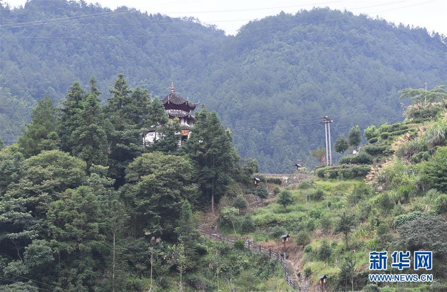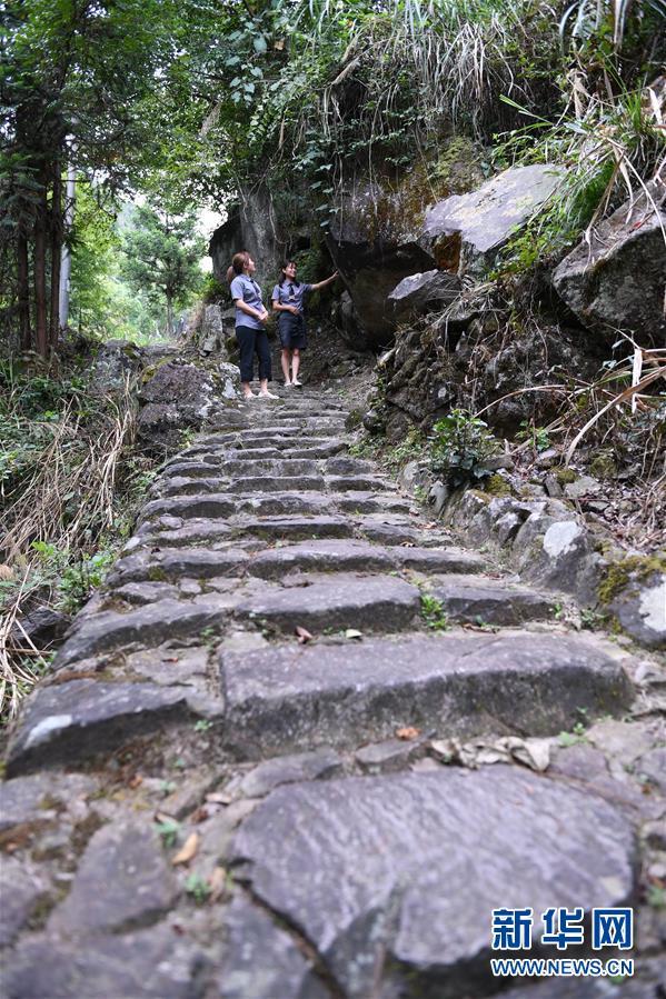 从文昌阁旁下到下党村的山路(8月8日摄)。新华社记者林善传摄