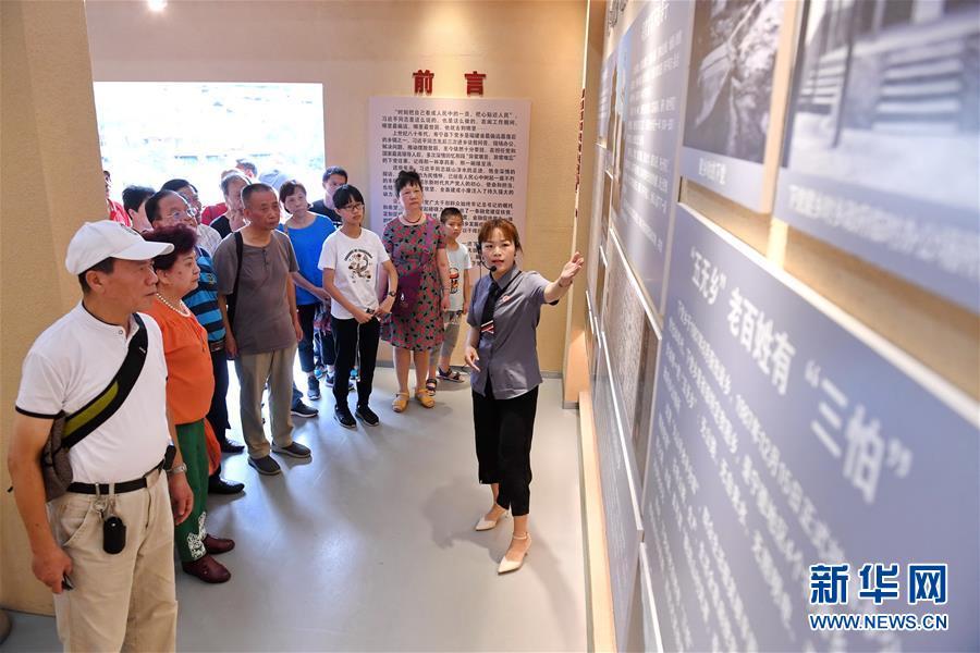 8月8日,游客在“难忘下党主题馆”听工作人员讲解习近平同志三进下党的故事。新华社记者林善传摄