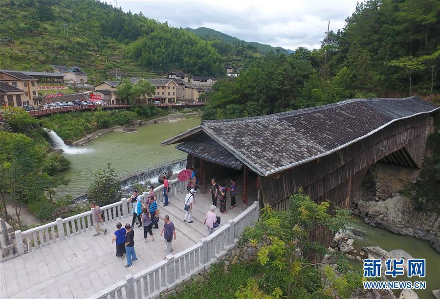 游客在下党村古廊桥“鸾峰桥”参观游览(8月8日摄)。新华社记者林善传摄