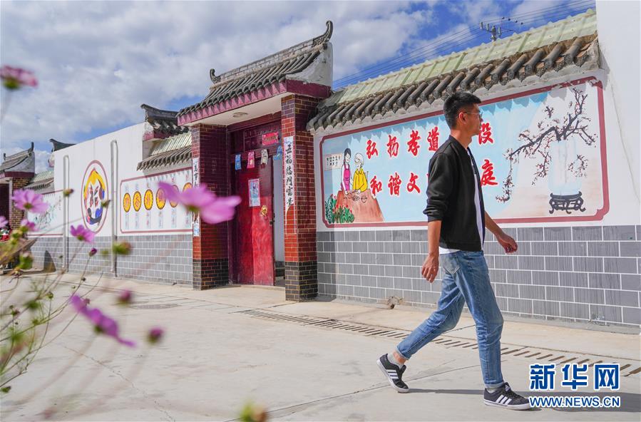 8月28日,在甘肃临夏回族自治州临夏县掌子沟乡白土窑村易地搬迁安置点,一名村民走过一处新居。 新华社记者 陈君清 摄