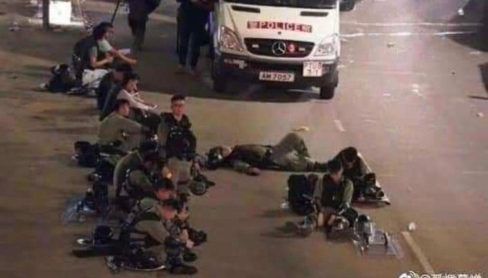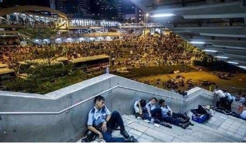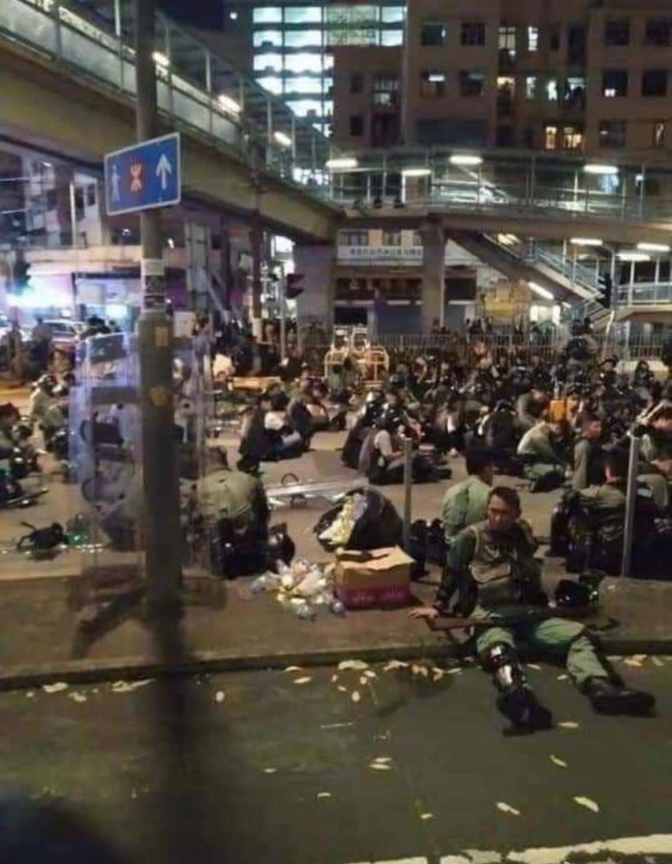 在与暴徒们对峙的间隙,港警们暂时卸下装备,疲惫地坐、躺在街边……这一幕幕让人心疼。昨天,新加坡总理夫人何晶在社交媒体上转发撑警贴,得到网友们的一致支持。