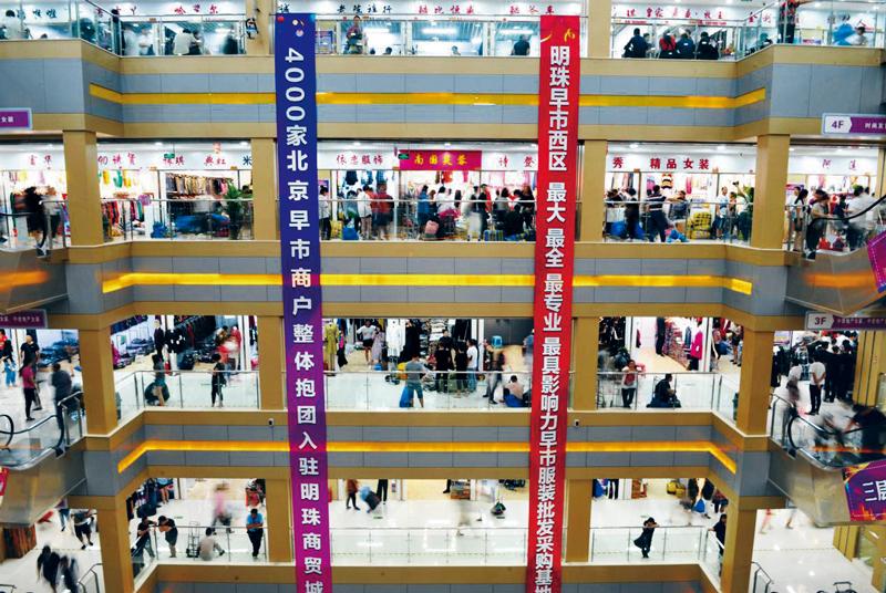 疏解北京非首都功能,就是疏解一般制造业、区域性专业市场、部分教育、医疗等公共服务功能和部分行政性、事业性服务机构等。为做好这项工作,北京市积极为疏解的企业、商户找出路。图为河北省沧州市明珠商贸城C座早市一角,4000家北京大红门早市批发商户在这里抱团入驻 。截至目前,沧州市明珠商贸城承接北京外迁商户超过1万户。 新华社记者 杨帆/摄
