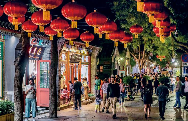 升级改造后的南锣鼓巷游人如织,北京传统胡同文化与现代商业在这里融合,吸引着八方游客。图为2018年9月23日,中秋节假期的南锣鼓巷。 北京日报社记者 武亦彬/摄