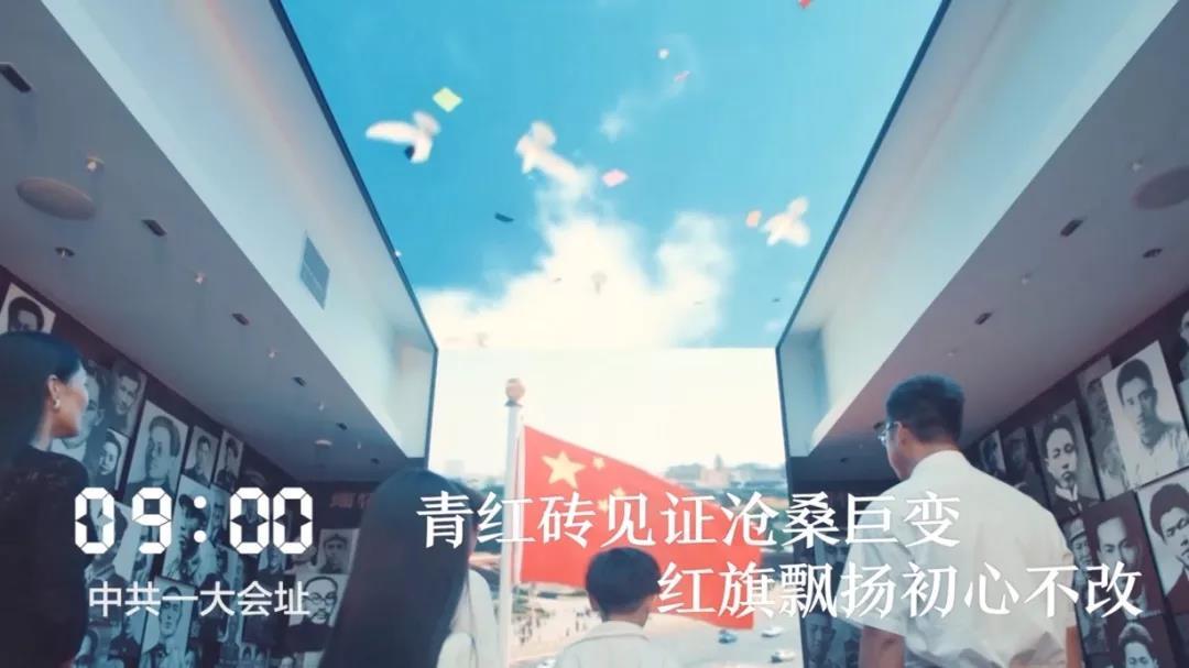 09:00 中共一大会址红旗飘扬