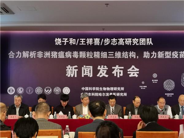 非洲猪瘟疫情在国内爆发之后,中国科学院生物物理研究所饶子和、王祥喜团队和中国农科院哈尔滨兽医研究所步志高团队联合上海科技大学、清华大学、中科院微生物所、武汉病毒所、南开大学等单位,从2018年12月起开始,对非洲猪瘟病毒颗粒和相关抗原分子开展了基础科研、临床检测及高效疫苗等多方面的联合攻关研究。