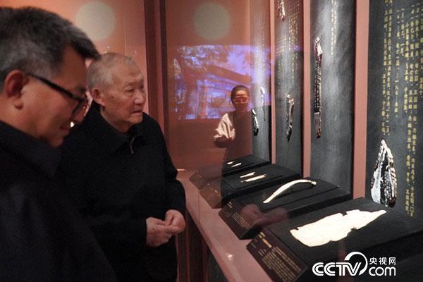 馆长和策展人陪同步行缓慢的他参观完了整个展览。他对每一件文物都仔细端详,满是一丝不苟的较真劲儿。“孙老先生身体不如从前了,但还是每周来一次。”一位工作人员告诉央视网记者。