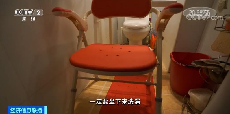 居家适老化改造工作人员兰皓说,洗澡的环境非常的局促,空气流动性又差,所以(老人)在里面洗澡的时候温度、湿度上升都非常快,所以我们建议老年人一定要坐下来洗澡,然后配合这样的防滑的设施,这样的扶手,我们每一步都有一个安全的把握。