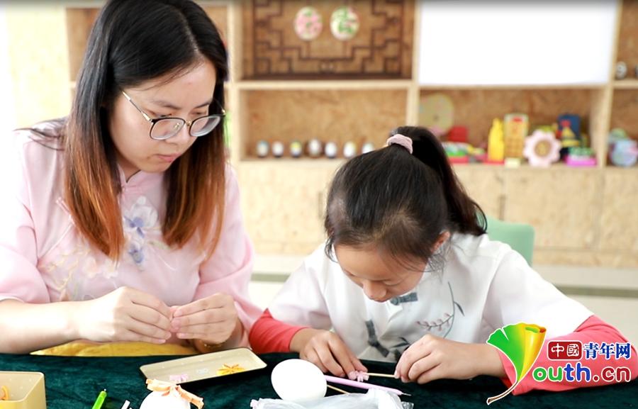姑胥小学的老师指导学生绘制彩蛋。中国青年网记者 张玘云 摄
