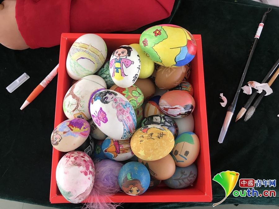 姑胥小学学生彩蛋作品。中国青年网记者 张玘云 摄