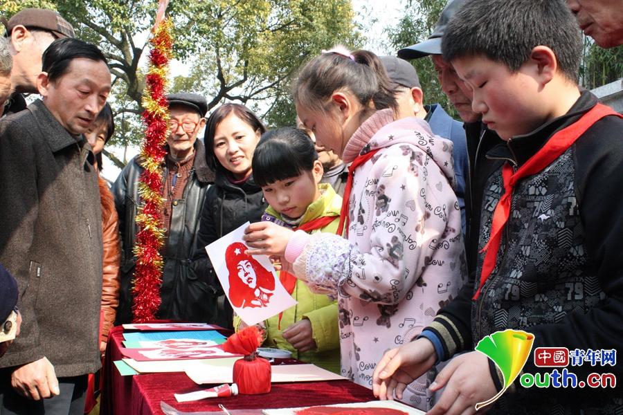 桃坞中心小学学生制作木版年画。中国青年网记者 张玘云 摄