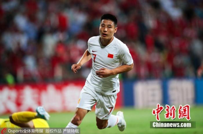 11月14日,世预赛亚洲区40强赛中,国足客场1:2不敌叙利亚,比赛中对手先入一球,此后武磊凌空推射扳平比分,张琳芃不慎乌龙导致国足再度落后。图为武磊在比赛中。图片来源:Osports全体育图片社