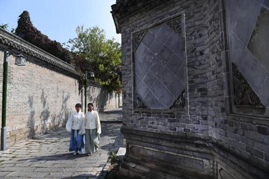 两名汉服爱好者穿着汉服行走在徐州市户部山历史街区。新华社供图