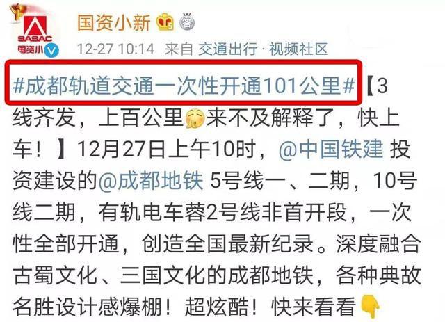成都轨道交通一次性开通101公里