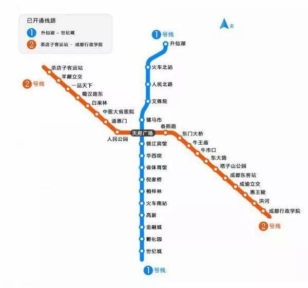 成都地铁1号线一二期、2号线一二期开通