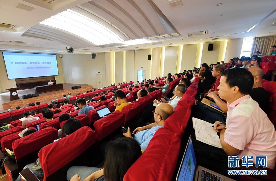 2019年9月18日,福建工程学院教师代表参加“不忘初心、牢记使命”主题教育报告会。新华社记者 林善传 摄