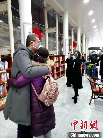资料图:图为山东首批医疗队深夜集结支援武汉,医护人员出发前和家属拥抱告别。 邱江波 摄